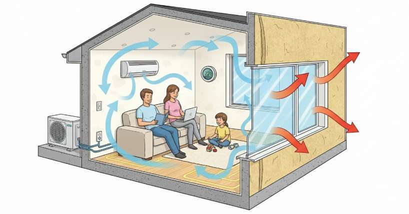 空調機器のフィルターが汚れていると、空気の流れが悪くなり効率が低下します。定期的な掃除や交換で性能を維持し、無理なく室温を調整できる状態を保ちましょう。また換気システムの適切な管理も重要で、外気導入量の調整や熱交換換気システムの導入により、エネルギー損失を減らせます。